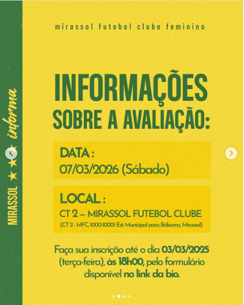 Fala galera que curte o FP \o/, Mirassol FC-SP divulgou as informações das suas avaliações de 2026! Confiram tudo a seguir: