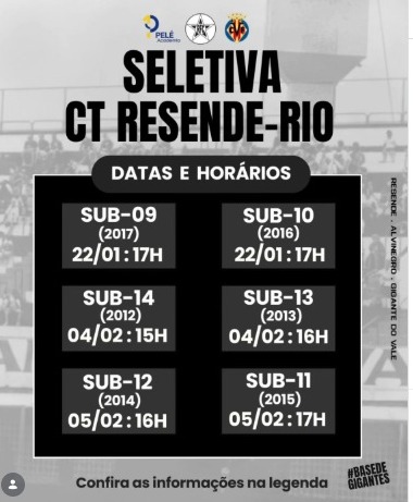 Fala galera que curte o FP \o/, Resende-FC com novas peneiras! divulgou as informações das suas avaliações de 2026! Confiram tudo a seguir: