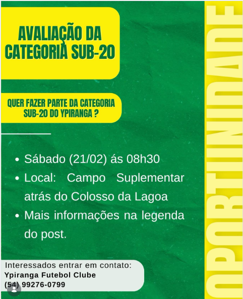 Fala galera que curte o FP \o/, Ypiranga FC divulgou as informações das suas avaliações de 2026! Confiram tudo a seguir: